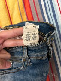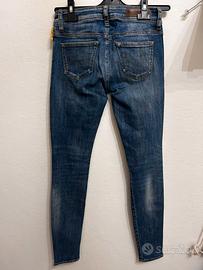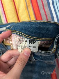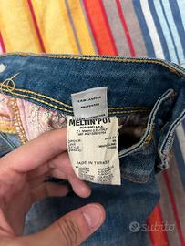 Jeans da donna Meltin Pot. Colore blu. Ottime condizioni. 92% cotone, 6% poliestere, 2% elastan. Taglia W25 L31 (vedere misure). Misure: vita 32 cm, altezza 98 cm.