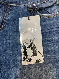 Jeans da donna vintage a vita bassa, marca famous, taglia 38, altezza 102 cm, larghezza 42 cm,nuovo con cartellino