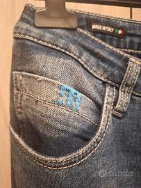 Vendo jeans da moto per donna. marca PMJ , usati poche volte, tenuti molto bene. Taglia 28, io indosso una 42, vestibilità giusta. Sono incluse ovviamente le protezioni alle ginocchia ed hanno la tasca interna laterale alle cosce per aggiungere altre protezioni. Vendo a 120 € trattabili. Disponibile per la spedizione.