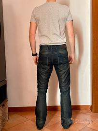 Jeans da moto rinforzati con tessuto 100% Kevlar nelle zone critiche, taglia W32 L34, utilizzati circa 4/5 volte, in condizioni perfette, senza segni di usura o difetti visibili.