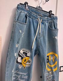 Dai carattere al tuo outfit con questi jeans in denim chiaro dal design unico!
