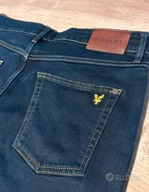Jeans originale marca Lyle & Scott taglia W36(50) L30 dimensioni larghezza vita 43cm lunghezza 99cm ampiezza coscia 32cm caviglie 18cm colore blu lavaggio scuro logo ricamato ottime condizioni.Per ulteriori info e foto su questo articolo o su qualsiasi altro prodotto non esitate a scrivermi