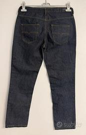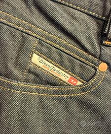 Jeans Diesel modello Belthy Ankle, taglio regular slim-straight a vita bassa. Denim grezzo (raw) blu scuro, cucitura arancione a contrasto. Etichetta “Diesel Industry Denim Division”. 100% cotone, Made in Tunisia. Taglia W27/L32 (corrisponde circa a una taglia 40 italiana). Orlo grezzo. Con hologram di autenticità. Condizioni: ottime.