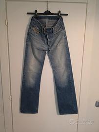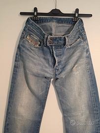 Jeans Diesel modello Bootcut vita bassa, gambe slim che si allarga dal polpaccio fino alla caviglia. Chiusura con bottoni. Tg 28 corrispondente ad una 46.