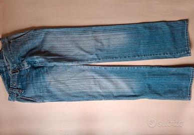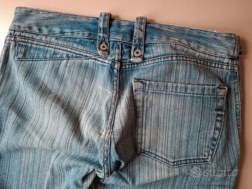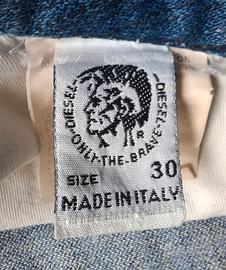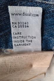 Jeans Diesel con vita bassa e gambuli molto lunghi. Misure: giro vita 88 cm, lunghezza gambule da cavallo a terra 90 cm. Presentano i caratteristici segni di usura che rendono i jans vissuti e più belli. A tuo piacere li puoi arricchire di strappi in punti strategici usando prima le forbici e dopo sfilaccicando il tessuto.