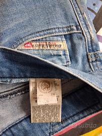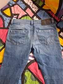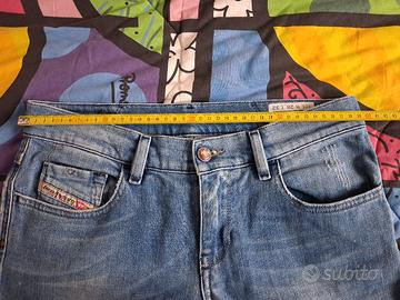 jeans unisex marca Diesel, tessuto denim blu, taglia 28 corrispondente ad una IT 42, misure vita cm 40, cavallo 21, lunghezza 97.