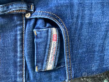 Jeans Diesel da uomo in denim blu. Un classico intramontabile per il tuo guardaroba. 2019 5POCKETS → modello del jeans (Diesel “2019” è una serie con 5 tasche classiche). FIT: SLIM → vestibilità aderente, ma non stretta come uno skinny. WAIST: MID → vita media (né troppo alta né bassa). LEG: SLIM → gamba affusolata (stretta ma non attillata). ATTITUDE: CONTEMPORARY → stile moderno / attuale (una descrizione del look generale).