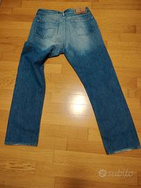 Jeans Diesel originali, modello industry, con segni di usura sull'orlo e una piccola macchia di candeggina sul retro come da foto. Ideali per un look vissuto o per lavori di upcycling/customizzazione".