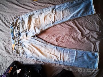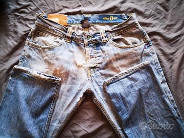 Jeans da uomo marca Stan Dart, taglia 33, in stile distressed con effetto usurato e strappi volutamente presenti sul fronte e sul retro.