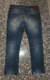 Vendo Jeans Dondup lavaggio scuro con un taglio sul ginocchio destro. Dettagli come bottone e fascia in cuoio sul retro molto belli.
