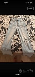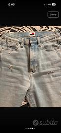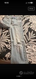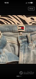 JEANS DONNA A CAMPANA TAGLIA 24 MARCA TOMMY ELASTICIZZATI CON STRAPPI SU GINOCCHIA COLORE CHIARO