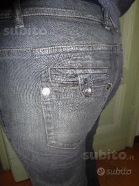 Jeans attuale in colore grigio "trattamento stone" con zone più chiare effetto scolorito.
