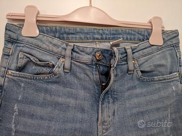 Jeans H&M Linea &DENIM modello Girlfriend Fit. - Vestibilità comoda. - Effetto strappato e sfilacciato. - Lavaggio chiaro.