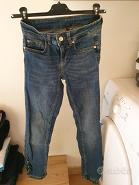 Vendo bellissimo paio di jeans Liujo taglia XS, mai messi perché me l'hanno regalati ma la taglia è troppo piccola. I jeans hanno la parte in fondo arricciata con i volant che danno un tocco di eleganza e unicità al jeans. Dietro c'è un brillantino. Vestono molto bene il lato B.