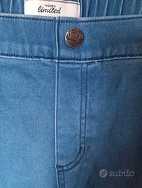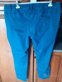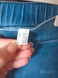 Jeans donna con: finto bottone, finta cerniera e finte tasche sul davanti; due tasche normali sul dietro ed elastico in vita. Taglia 56 mai indossati
