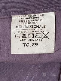 Jeans Pinko in cotone elasticizzato a sigaretta, colore viola. Misure: circonferenza vita-82 circonferenza fianchi-10 lunghezza cavallo-92 altezza cavallo-22 lunghezza totale-109 circonferenza fondo-28 Peso:480gr.