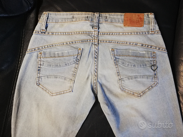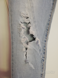 Vendo jeans donna con strappi frontali, skinny, vita bassa, chiusura a bottone. Colore: lavaggio chiaro. Tg XS (38-40)