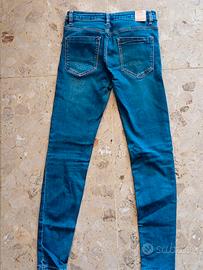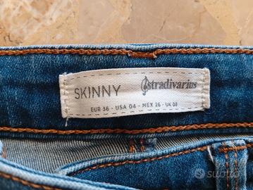 Jeans skinny da donna Stradivarius in denim blu. - Taglia: S/36 - Vestibilità aderente. - Effetto leggermente sbiadito. - Dettagli strappati sulle ginocchia. - Misure: - L: 92 - Vita: 32 - Cavallo: 67 📦 Spedizione in 24 ore 📦