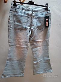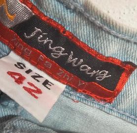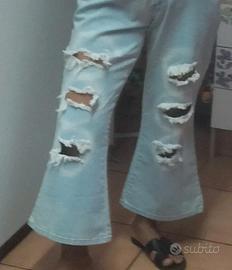 Modello leggero con *strappi decorativi* sul davanti e lavaggio *azzurro chiaro slavato*. Tessuto comodo e non elasticizzato, ideale per un look casual. 📏 *Taglia 42 / M* 📐 Lunghezza: 80 cm (sopra la caviglia) 📏 Girovita: 80 cm colore lavaggio chiaro. 🆕 *Nuovo, mai indossato*