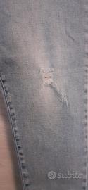 jeans donna, cotone elasticizzato, con strappi sul davanti.