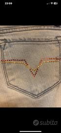 Bellissimi jeans, donna Versace taglia 40, misura vita 38 cm, lunghezza 119 cm, bacino 44 cm… cinque tasche, di cui due sul dietro con strass in Swarovski. Per ulteriori informazioni, contattatemi.