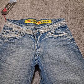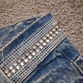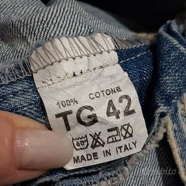 Veste a gamba dritta. Non elasticizzato. Effetto originale di invecchiato e consumato. La taglia sull'etichetta non corisponde. Veste xs. Prendere riferimento alle misure fornite: Larghezza vita: cm 38 Larghezza fianchi: cm 49 Altezza cavallo: cm 18 Largezza coscia: cm 26 Larghezza caviglia: cm 19 Lunghezza: cm 105