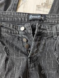 Vendo jeans originali Doomsday Society in denim con particolare finitura "Destroyed" (strappi e usure originali di design). Un capo dallo stile streetwear deciso, perfetto per chi cerca qualità e resistenza.