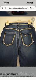 Jeans denim blu scuro con inserti catena sulle tasche dorati