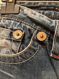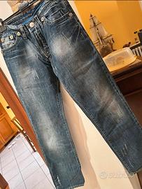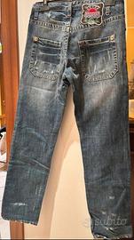 Jeans Dsquared2 stile anni 2000 (Y2K) Denim blu con lavaggio used. Vestibilità regolare, gamba dritta leggermente slim. Patch posteriore “Camp Chippewa”. Buone condizioni, perfetti per look streetwear / Y2K