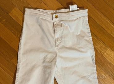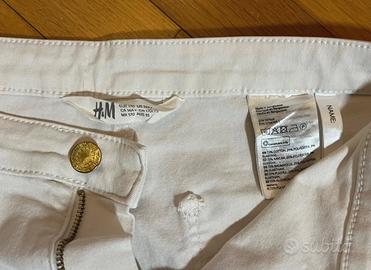 Pantaloni skinny bianchi elasticizzati con bottone d'orato. Taglia 170cm +14 anni Tasche posteriori