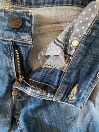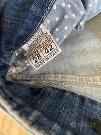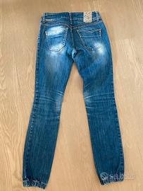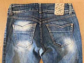 Jeans elasticizzato X-Cape, taglia 42, 5 tasche. Chiusura con zip + bottone siglato. Fondo gamba con elastico. 97% cotone, 3% lycra Nuovi, mai usati.