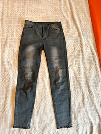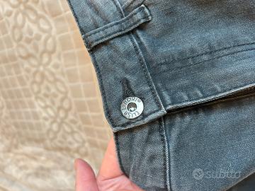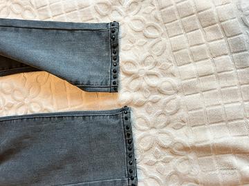 Vendo Jeans Elisa Landi taglia 44, colore grigio scuro con effetto leggermente slavato. Molto belli gli strass attorno alla caviglia con fiocco sul retro.