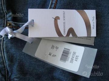 Jeans Emmanuel Schvili (made in Italy) taglia 50 con applicazioni di pietre e frange scamosciate su entrambi i lati