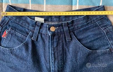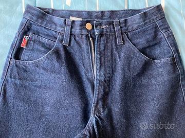Vendo jeans denim Enrico Coveri vintage anni 80 del periodo Paninari, etichetta in pelle sulla tasca posteriore, misura 30W 32L US corrispondente ad una 46 IT, orli originali, colore denim scuro, allacciatura con cerniera, lunghezza della gamba dalla vita al fondo 99 cm, larghezza in vita 35 cm, nuovi senza etichetta vendo per taglia errata, pantaloni da vero Paninaro.