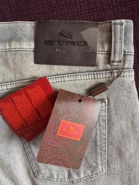 Pantaloni Jeans ETRO, slim fit, color grigio lavato, taglia 34, con applicazioni in metallo. made in Italy, nuovi, mai utilizzati, con etichetta originale (prezzo da listino €400).