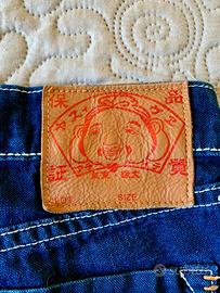 Jeans Evisu con caratteristica ala lunga ricamata,piccolo difetto in fondo,ma non visibile se risvoltati come solitamente vengono indossati