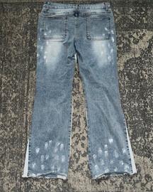 Vendo jeans modello flared con inserti bianchi a contrasto e dettagli, taglia 32. Stile streetwear unico, perfetto per outfit originali. Dettagli: • Condizioni: Usati pochissimo, pari al nuovo. • Taglia: 32. • Fit: Gamba larga con fondo sfrangiato. Prezzo: 25€ NON TRATTABILE. Disponibile per spedizione o scambio a mano.