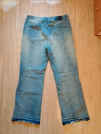Jeans Flared usati pochissimo sono di colore azzurro con dettagli bianchi taglia L Prezzo poco trattabile