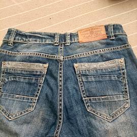 Jeans Frankie Malone originali tg s NUOVO Alta e nota qualità del brand di jeanseria Originalissimo nei particolari interni ed esterni su tasche, cuciture a contrasto, colore blu effetto stinto con elastici interno per regolare la vita