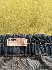 Jeans vita alta, gamba larga, tg M, usati pochissimo. Lunghezza gamba dalla vita cm 97,5, lunghezza cavallo dalla vita cm 32.