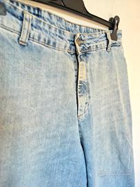 Jeans cropped Dixie, 100%cotone. Caratterizzato da una gamba extra ampia ev vita alta, valorizza la figura mantenendo una linea fluida e moderna. ll denim lavaggio chiaro dona un tocco vintage e versatile, ideale per ogni stagione.Da abbinare con top minimal, camicie fluenti o plazer per un look fresco e sempre attuale. In ottime condizioni!