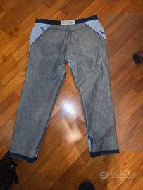 Hanno protezione laterale antiabrasione. Inserti per le ginocchiere. Cotone molto spesso che resiste maggiormente alle abrasioni. Leggera usura su cavallo ma come si vede dalle foto il tessuto è integro. Misure su foto