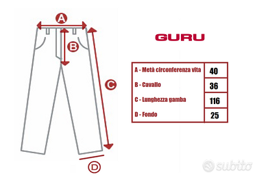 Jeans Uomo Guru Originale Mis. W31-L34 (46 ITA) Tessuto: 100% Cotone Condizioni: Usato (OTTIMO STATO) Vestibilità: Larga (gamba ampia) Chiusura: Cerniera e bottoni Pagato oltre i 100 euro.