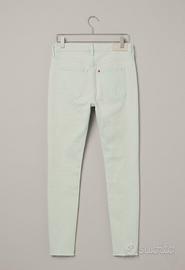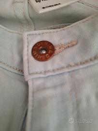 Bellissimi jeans H&M azzurro ghiaccio super chiaro con orlo sfrangiato. Modello skinny a vita bassa. Classico modello a 5 tasche, chiusura con zip e bottone metallico. A disposizione per ulteriori informazioni Vita 36cm cavallo 23cm lunghezza 95cm