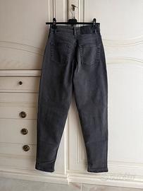 Vendo jeans H&M (linea Divided) in una tonalità grigio scuro/antracite con effetto leggermente lavato. Il modello ha un taglio mom fit con vita alta, chiusura con zip e bottone, tasche davanti e dietro.