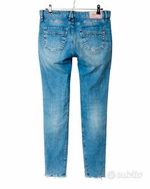 Vendo jeans donna Herrlicher originali modello slim fit / skinny, super richiesti per primavera-estate ☀️ Colore denim azzurro chiaro slavato effetto used con sfumature naturali. Presentano strappi sulle ginocchia, fondo sfrangiato raw hem e dettagli posteriori con bottoni/cuciture decorative che li rendono molto attuali e facili da abbinare. ✔ Vestibilità aderente che valorizza la figura ✔ Denim morbido e leggermente elasticizzato ✔ Modello casual chic / streetwear ✔ Perfetti con sneakers, stivaletti, sandali o tacchi Taglia W27 circa IT 40 / EU 36 / XS-S Misure: lunghezza totale: 97 cm interno gamba: 71 cm fondo: 12/13 cm altezza vita: 19/20 cm Condizioni ottime: usati ma ben tenuti come da foto. Jeans di qualità di brand ricercato, modello molto attuale.