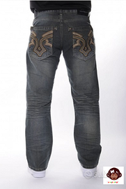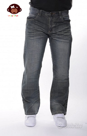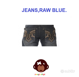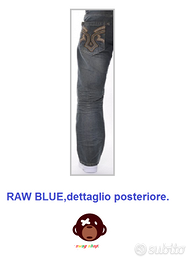 Jeans Hip Hop,Skater,modello straight fit,Stretch Ringspun,marca Raw Blue misura Tg: 28/30 americana,equivalente alla misura Tg:42/44 Italiana,color blue oil,materiale 100% cotone,tessuto jeans,decorazione tasche posteriori ricamate con motivo tribale,chiusura a bottoni,e cerniera lampo(zip).