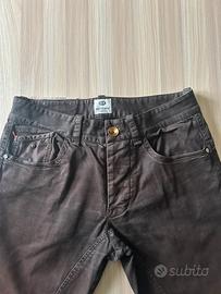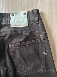Bellissimi jeans da donna Historic Research in colore marrone, realizzati in 100% cotone e caratterizzati da numerosi dettagli tipici del brand, che li rendono un modello unico e ricercato.