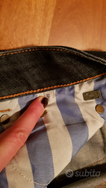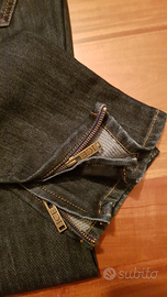 Jeans originali taglia 32 colore blu scuro. Tasche con cerniere, e cerniere apribili in zona caviglia polpaccio
