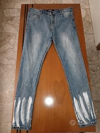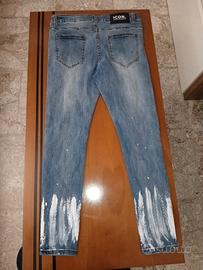 Vendesi jeans originali ICON AMSTERDAM, modello con particolari schizzi di vernice bianca sul fondo. Taglio moderno, ottima vestibilità. Taglia: 44 italiana. Stato: Come nuovi, usati pochissimo. Stile: Streetwear / Fashion. Disponibile per consegna a mano o spedizione tramite TuttoSubito.